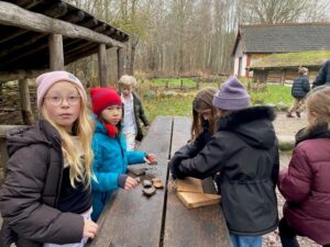 Vi var på tur til Kroppedal Museum i Vestskoven. I forbindelse med vores forløb om Vikingetiden, var 3. syd på besøg på museet, hvor vi både legede på deres kæmpestore og meget flotte legeplads, legede i deres vikingelandsby, gik over Harald Blåtands genopførte bro og gik på opdagelse på museets udstilling. På udstillingen så vi alle mulige spændende fund, lærte om hverdagsliv i Vikingetiden og så ægte skeletter fra dengang.