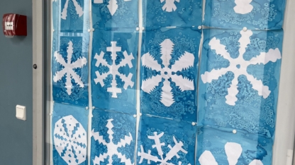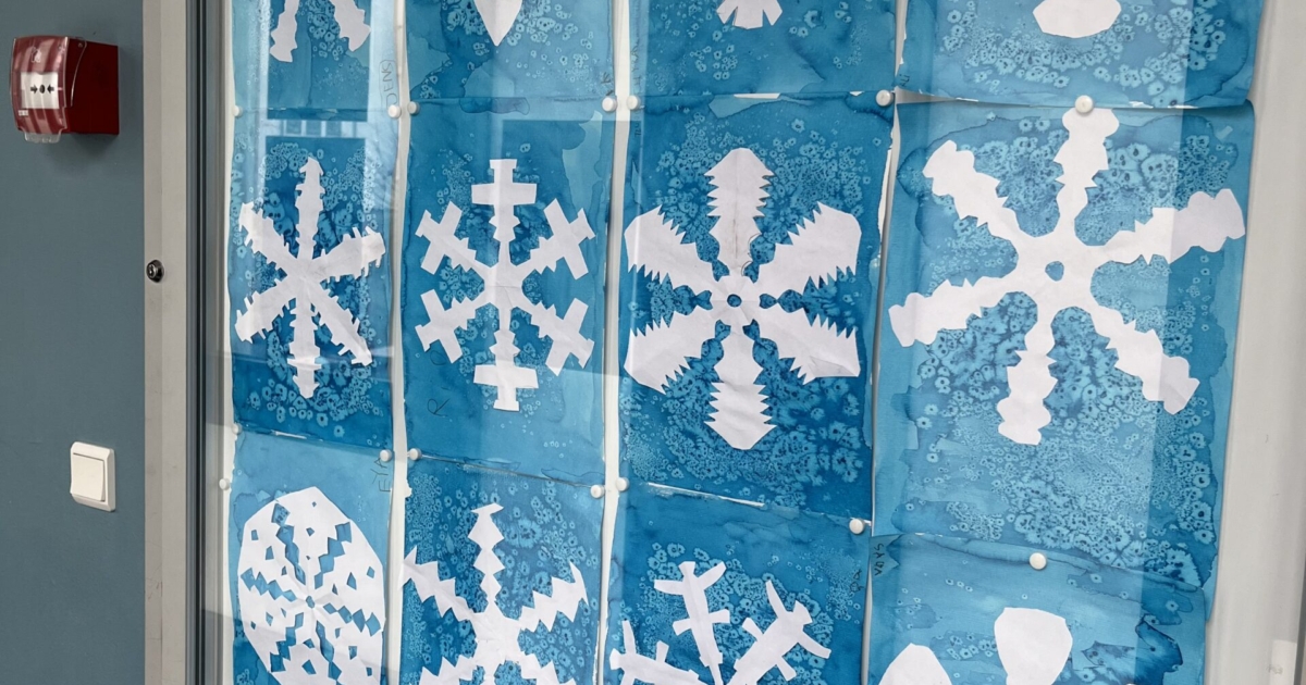 Børnene har lært lidt om hvordan isblomster dannes og de har klippet isblomster ud af papir.